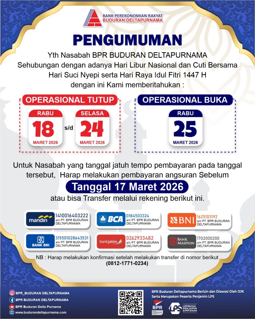 #BPRBuduranDeltapurnama #Pengumuman #InfoNasabah #LiburNasional #Nyepi #IdulFitri #BPR